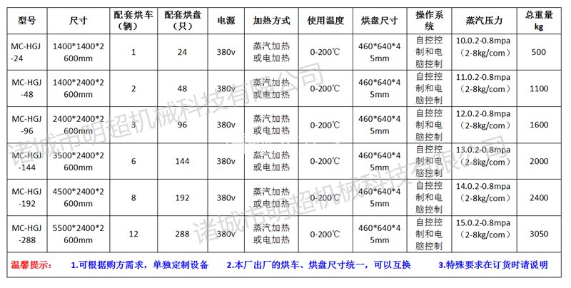 箱式烘干機型號規格以及設備參數