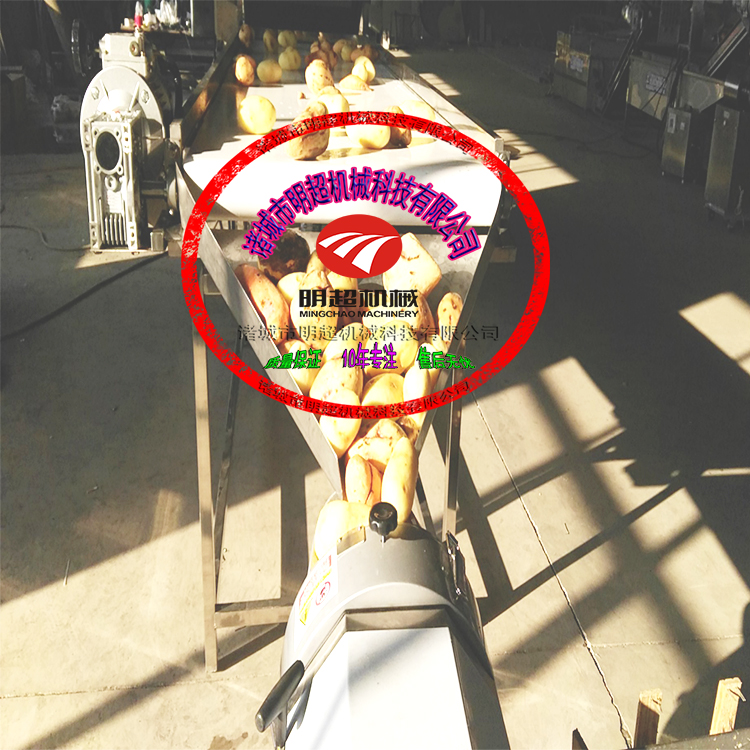 6.多功能切菜機(jī)可用于凈菜加工中的切片、切絲、切塊,可用于蘿卜、土豆、山藥、黃瓜、元蔥、菠蘿、香蕉等莖桿狀物料的分切。自動(dòng)定向,片形整齊,厚薄均勻。
