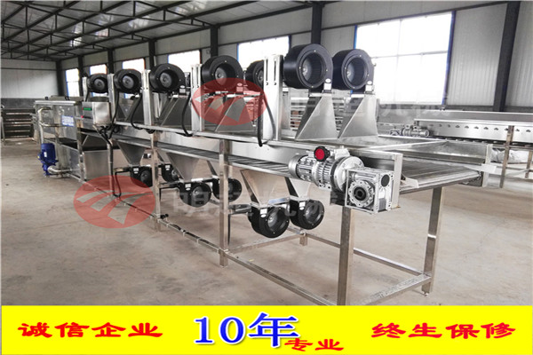 5. 根據要求,可選擇離心甩干機(離心甩干機不容易進行流水線作業),或者風干瀝水機(適宜流水線操作), 能有效將果蔬內外的水分吹干或者烘干,具體還要根據用戶需求,為您量身定制。如果風干的果蔬當中,有怕容易損傷表皮的,就要使用平行風干機,是采用一整條的網帶進行輸送風干。