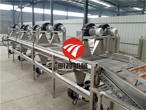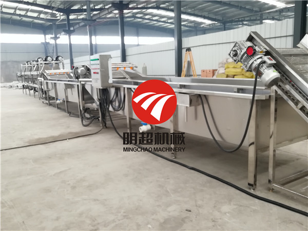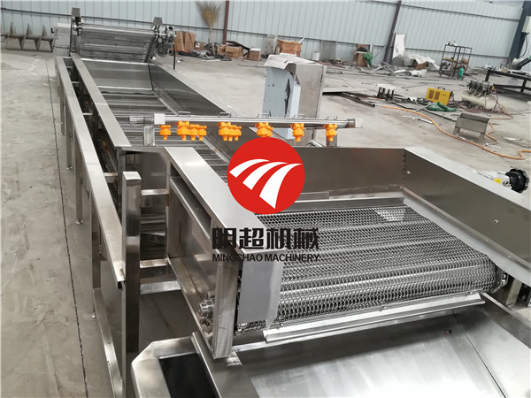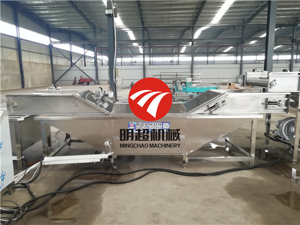 全自動蔬菜清洗機工作原理大致是:首先需要清洗的蔬菜全部放入水槽,在高壓水流和強力氣泡的作用下,被充分打散、翻滾、清洗、傳送。蔬菜表面的泥沙會脫落,沉淀到底部隔離倉,防止了翻揚回流造成再度污染。而從蔬菜上洗落下來的雜物和小蟲會漂浮在水面,然后被網孔收集,溢出水槽的水流被排除水箱,進入尼龍袋中。蔬菜被蔬菜清洗機洗干凈后,再經過噴淋的清洗,然后通過傳送帶送出,傳送帶末端有一個吹起裝置,沒有被清理掉的雜物吹落。蔬菜清洗機自帶水循環系統,清洗槽和低貯水箱中的水在高貯的水箱中過濾后,再由離心泵加壓被送回水槽。耗水量較低,節水節能。所有附屬在清洗機上的裝置及構件都可簡便安裝、拆卸和清洗。通過二至三臺的連接,可使清洗、去異物、殺菌、冷卻等工藝連續進行。蔬菜清洗機主要部分皆采用不銹鋼制作,洗凈度高,能保持原有色澤。廣泛用于清洗葉菜類、食用菌類、水果、海產品和中草藥類等各類農副產品。是當今蔬菜加工、食品、餐飲等行業的設備。