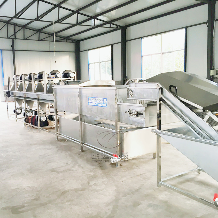3、紅薯清洗機:通過浸泡的方式,將紅薯和紅薯表面的泥沙分離,這樣有效保護紅薯表面沒有傷痕,在通過鼓泡的方式將紅薯清洗一遍,再由網帶輸送到下一道工序,該機水可循環利用,操作簡單,整機采用sus304不銹鋼材質制造,完全符合對食品衛生的需求