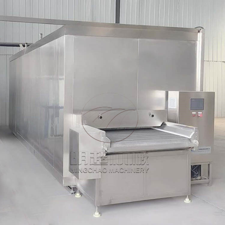 6、速凍設備:通過速凍機速凍紅薯,能保持紅薯原有的營養價值,速凍機是一種節能,多功能,多用途的一款經濟實用速凍設備,可采用網帶式,柜式,鏈板式,防粘布等等,要根據每個物料的不同來選擇,主要由制冷系統,速凍室,輸送系統,控制系統等組成,可單獨實用,也可配套流水線使用,通過傳送帶輸送,然后經過速凍室從速凍出口將速凍好的紅薯輸送出來,控制部位采用進口部件,采用了自動控溫,自動控制,解決了人控不足,制冷機采用了進口壓縮機,保證設備的運行可靠安全。