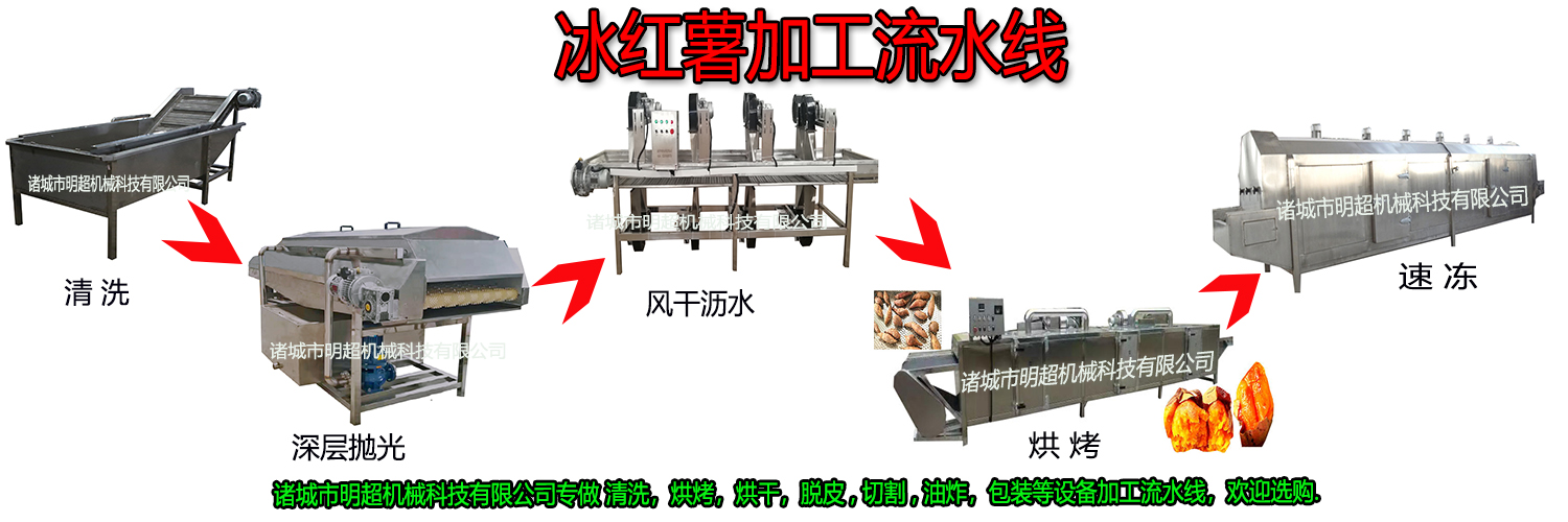 經過清洗好的紅薯,進入紅薯烘烤設備烘烤好的紅薯直接進入速冷凍8小時,下面就來介紹一下冰紅薯加工操作流程:
