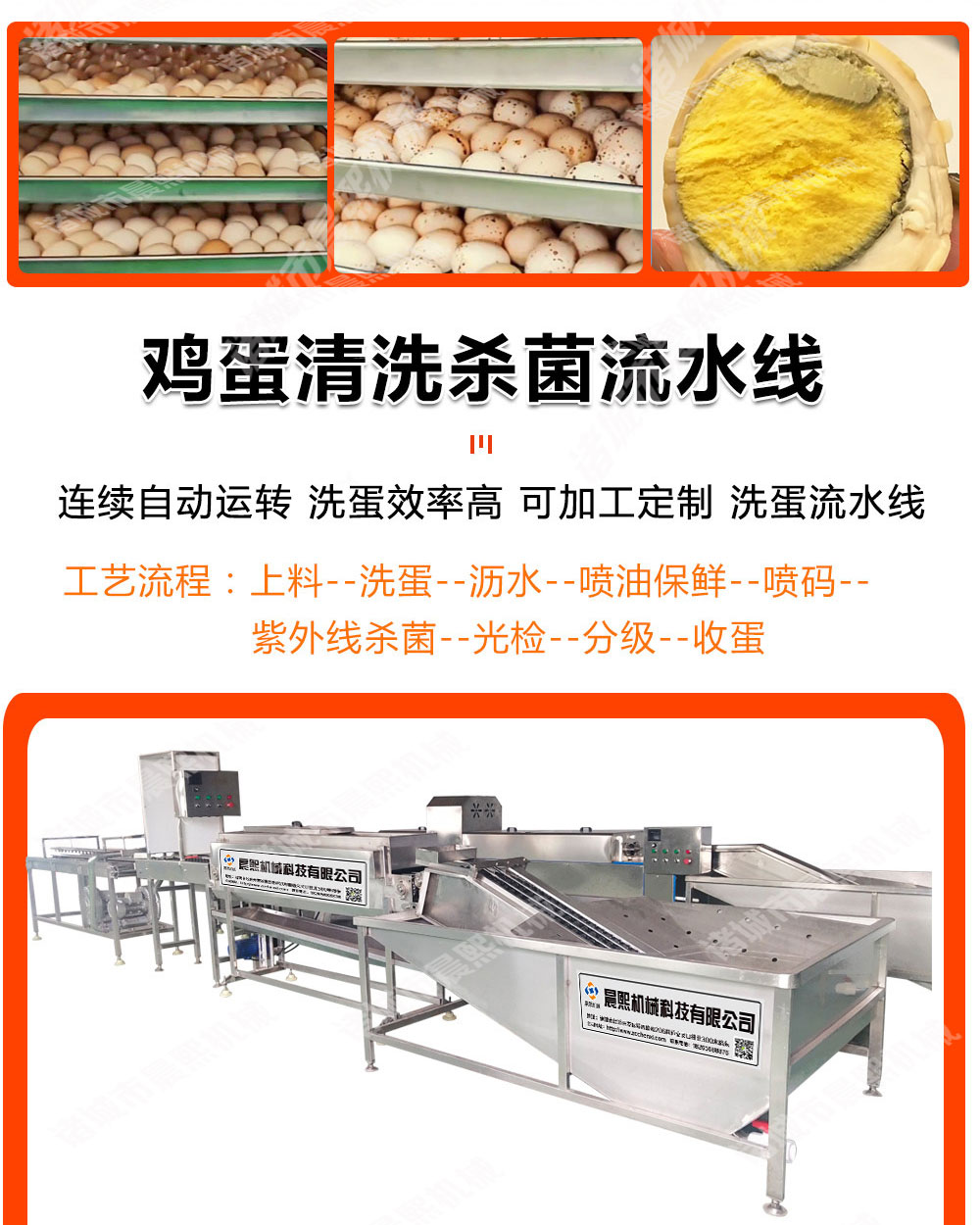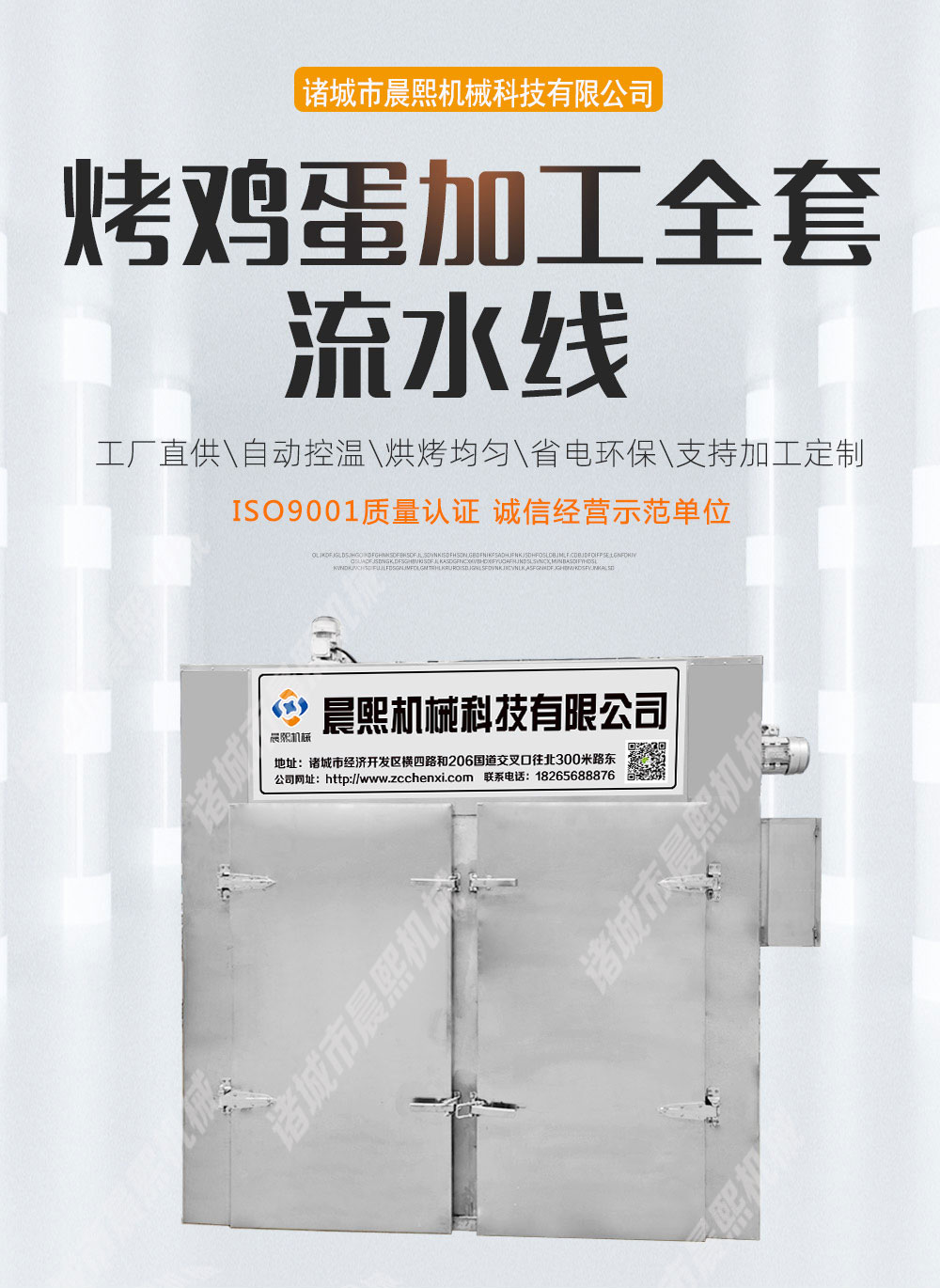 韓式即食雞蛋烘烤流水線 蛋黃烘烤箱是目前市面上新型雞蛋烘烤設(shè)備,是實(shí)現(xiàn)財(cái)務(wù)自由的首選設(shè)備,加工烤雞蛋需要經(jīng)過(guò)清洗,殺菌,蒸煮,光檢,瀝水,腌制,烘烤,包裝,攤涼等工序完成,現(xiàn)在烤蛋機(jī)工藝有幾種一種是直接烘烤帶皮生雞蛋,另外一種是鹵制后進(jìn)行烘烤脫皮后烤雞蛋,工藝多種多樣,不同工藝配不同的設(shè)備,那么烘烤時(shí)間多少,烘烤溫度多少這需要根據(jù)每個(gè)烤蛋工藝不同可以調(diào)試,今天咱們只介紹雞蛋烘烤流水線,加工雞蛋鴨蛋需要人工把不合格的雞蛋鴨蛋挑選出來(lái),然后工人經(jīng)過(guò)清洗后采用電加熱方式,讓雞蛋受熱均勻,達(dá)到烘烤的目的,烤盤尺寸:640*460*45mm,烤雞蛋設(shè)備有24盤,48盤,96盤,144盤,192盤,288盤等等,采用恒溫烘烤,烘烤上下左右中間一致,我們采用高溫高濕防爆風(fēng)機(jī)將新鮮的空氣抽到烘烤箱內(nèi)通過(guò)分封板將加熱管產(chǎn)生的熱氣循環(huán)于烘烤箱內(nèi),熱氣圍繞著每一個(gè)雞蛋和鴨蛋慢慢的將里面的濕氣排出產(chǎn)生氣體后,在通過(guò)排濕風(fēng)機(jī)將濕氣排出,這樣周而復(fù)始慢慢的雞蛋鴨蛋就烘烤出來(lái)我們想要的樣子了,雞蛋烘烤過(guò)程中無(wú)需人工操作,無(wú)需翻料,節(jié)省人工,自動(dòng)烘干自動(dòng)排濕自動(dòng)烘烤后自動(dòng)報(bào)警,自動(dòng)斷電,控制箱可選用數(shù)字觸摸屏,PLC等方式,具體可詳談,價(jià)格也是從幾千到十幾萬(wàn)不等,下單前請(qǐng)先跟我們聯(lián)系,下面我們來(lái)看看雞蛋烘烤流水線,蛋黃烘烤箱加工需要全套設(shè)備有哪些,