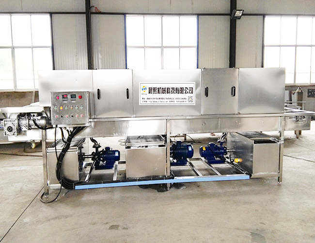 工作流程:入料--除渣--預洗熱水 --熱水清洗-- 殺菌 --烘干